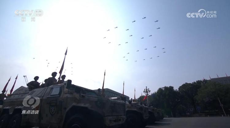 今年的国旗保护步骤包括三个编队。在天安门广场的上部,三架Z-20通用直升机是弗洛索党,国旗和军事旗帜的旗帜。后面有两架Z-10武装直升机来护送它们。在长lea之下飞机的权限,九名战斗人员保持了严格的形成,并穿过了天安门的门。